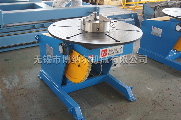 焊接變位機為焊接法蘭及盤狀類工件的專用設備,可使工件實現360°回轉或者0-90°/120°翻轉,可與操作機、弧焊電源配套使用,使工件達到理想的焊接位置,回轉速度采用變頻器無級調速,運轉平穩。結構形式可分為單座傾翻式、頭尾式、頭尾升降式、L型回轉翻轉式等。特殊要求另行設計。