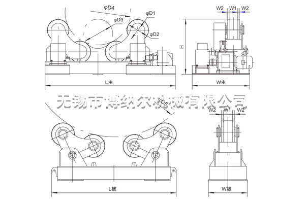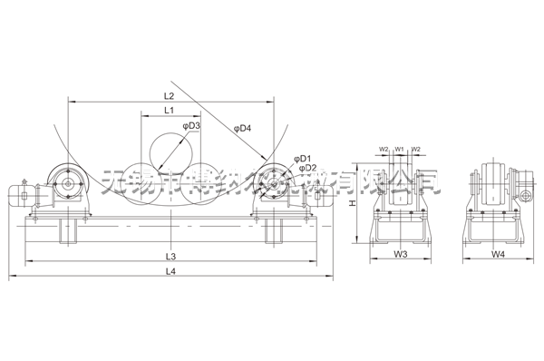 根據(jù)工件直徑大小自動調(diào)節(jié)滾輪組的擺動,無須人工調(diào)節(jié)。組合式滾輪,承載能力大,驅(qū)動能力強。根據(jù)驅(qū)動方式可分為單驅(qū)動、雙驅(qū)動兩種形式。